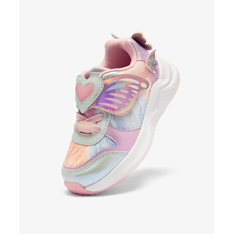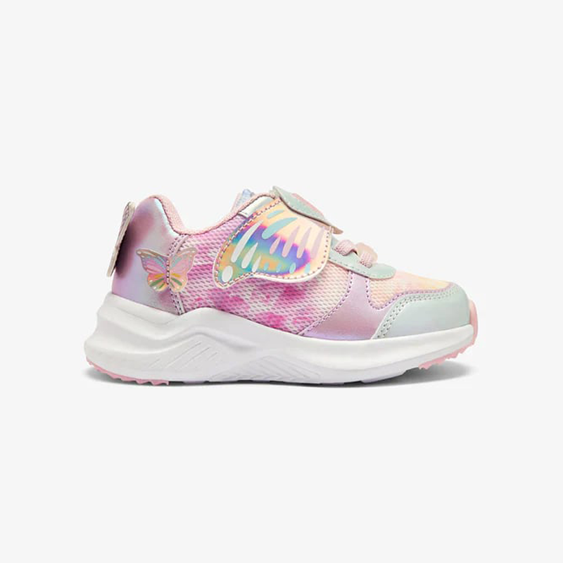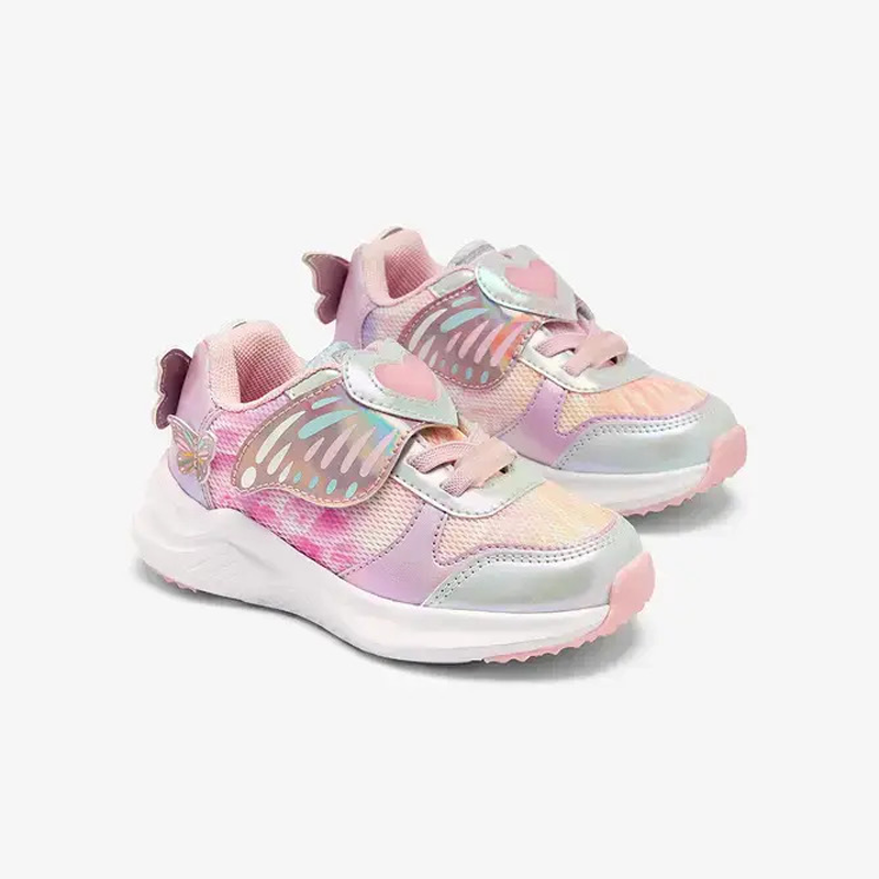 Αθλητικά παπούτσια με μοτίβο πεταλούδας, ιδανικά για καθημερινή χρήση, που συνδυάζουν την άνεση με μια διασκεδαστική πινελιά σε κάθε βήμα. Ο σχεδιασμός τους σε ροζ απόχρωση διαθέτει μια λεπτή λεπτομέρεια πεταλούδας και ενσωματωμένα φώτα που φωτίζουν με την κίνηση. Είναι παπούτσια ελαφριά κι αντιολισθητικά