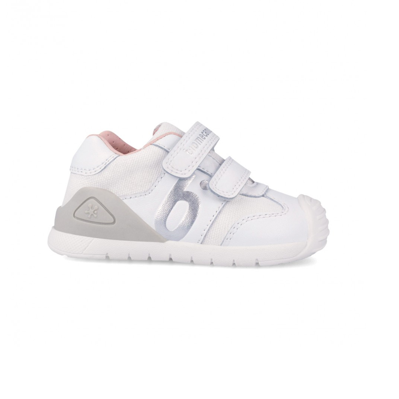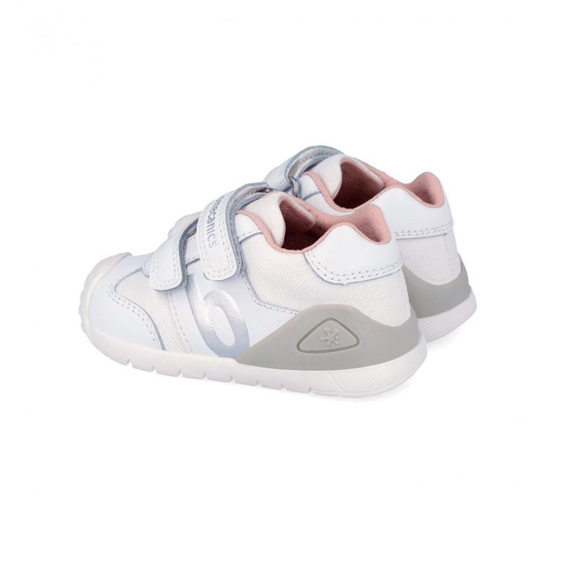 Κοριτσίστικα sneakers Biomecanics κατασκευασμένα από λευκό δέρμα και ύφασμα. Διαθέτουν αφαιρούμενους, αναπνεύσιμους πάτους που βοηθούν στην πρόληψη της υγρασίας, των μυκήτων και των βακτηρίων, ενώ το ρυθμιζόμενο κλείσιμό τους εξασφαλίζει άνετη και ασφαλή εφαρμογή. Η κοπή μας σε σχήμα U αποτρέπει την πίεση στην περιοχή του αστραγάλου, παρέχοντας μέγιστη ελευθερία κινήσεων, ενισχυμένη με μαλακούς και ελαφριούς εξωτερικούς πλευρικούς σταθεροποιητές. Η εύκαμπτη και ελαφριά σόλα προστατεύει και προσφέρει αντικραδασμική προστασία, προωθώντας ένα άνετο και ασφαλές βάδισμα.
