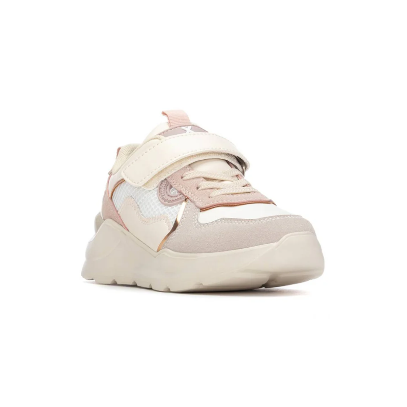Κοριτσίστικα sneakers Xti από συνθετικό υλικό και ύφασμα στο εξωτερικό και υφασμάτινη επένδυση στο εσωτερικό. Είναι παπούτσια για κορίτσια ανατομικά με μαλακό πάτο κι ελαφριά σόλα. Είναι καθημερινά sneakers με αντιολισθητική σόλα 3 εκ. ύψος στο πίσω μέρος. Φοριούνται σε πολλές περιστάσεις και ταιριάζουν με όλα τα στυλ. Κλείνουν με κορδόνια και αυτοκόλλητο στο πάνω μέρος. Πολύ όμορφα, άνετα και στυλάτα που αναδεικνύουν κάθε εμφάνιση. Άνοιξη/Καλοκαίρι 2026