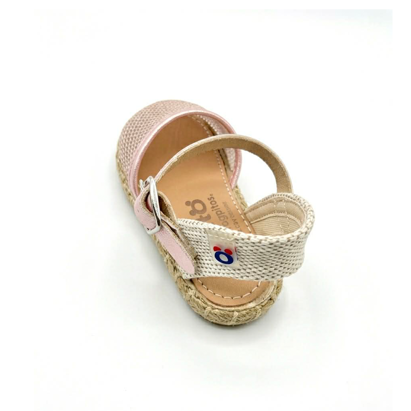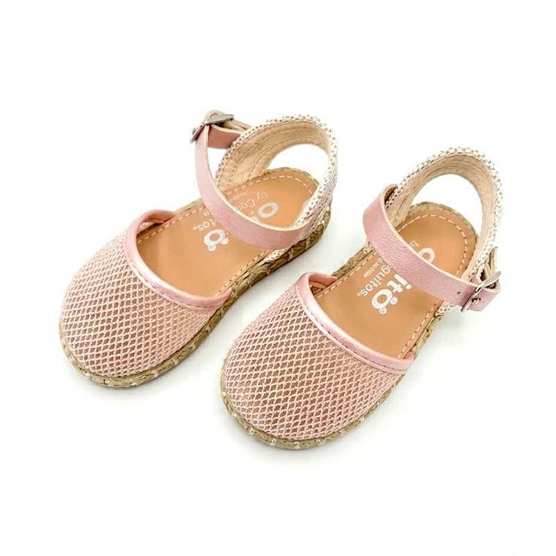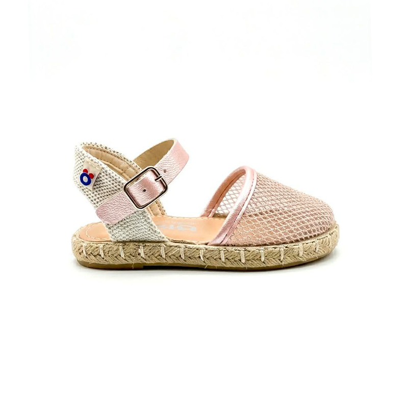 Κοριτσίστικες εσπαντρίγιες Conguitos ροζ/nude πλέγμα με διακριτικό ροζ φινίρισμα και μεταλλικές λεπτομέρειες που συνδυάζονται εύκολα για καθημερινή χρήση ή επίσημες περιστάσεις. H σόλα είναι από φυσική γιούτα κι εύκαμπτη. Ελαφρώς πιο ψηλό τακούνι για πιο ξεκούραστο περπάτημα. Κλείνουν με κούμπωμα γύρω από τον αστράγαλο για σταθερότητα κι άνετη εφαρμογή. Υψηλής ποιότητας υλικά με την εγγύηση της Conguitos. Άνοιξη/Καλοκαίρι 2026